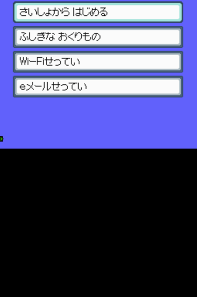 Po wciśnięciu start przywitało mnie primytwne menu. Pierwsza opcja zaczyna nową grę, druga jest powiązana z Mystery Giftem, trzecia wysyła do ustawień Wi-Fi konsoli, a czwarta… Niestety nie jestem pewny co może robić. Wysłała mnie do klawiatury. Bardzo prymitywnej klawiatury