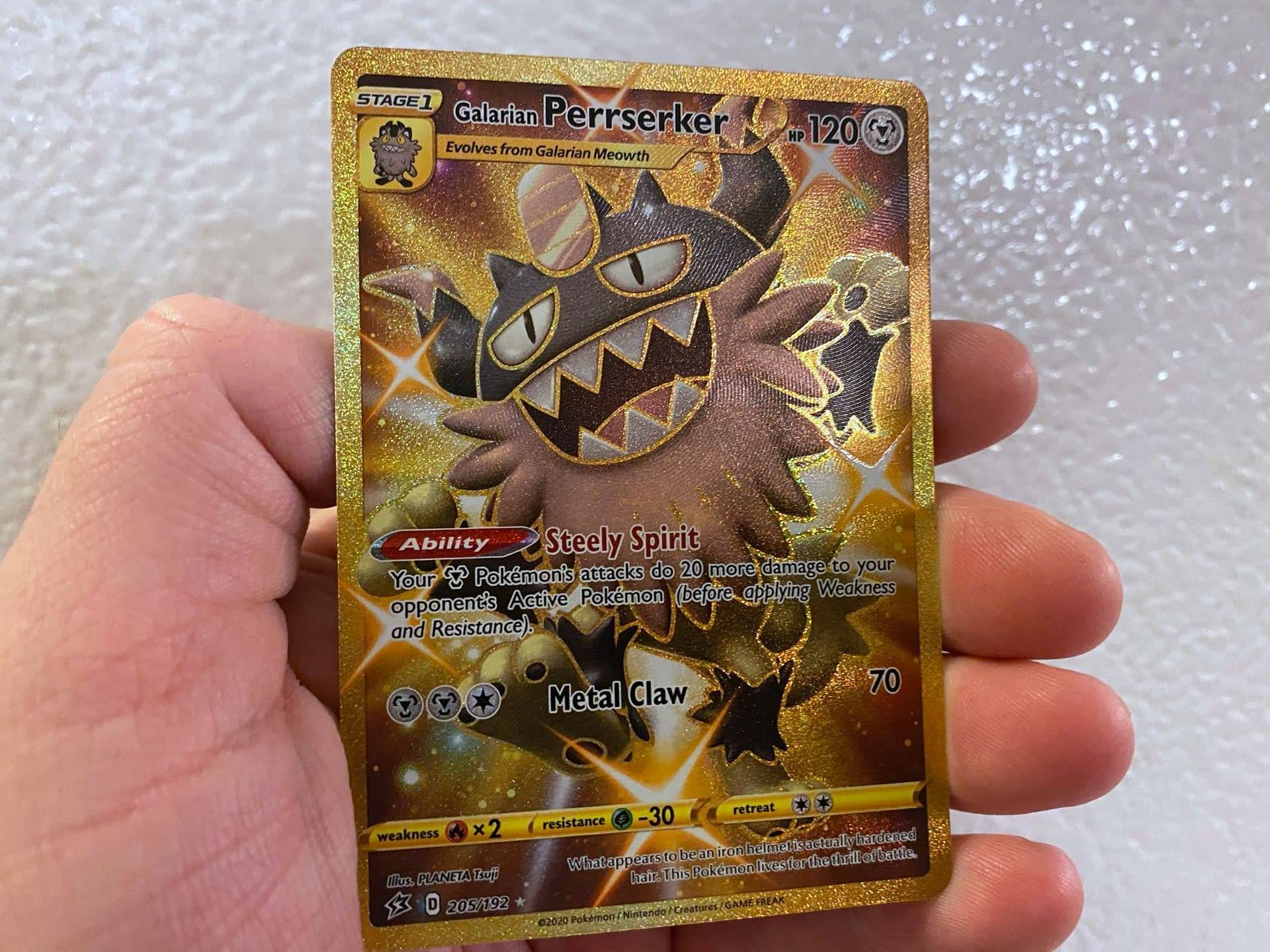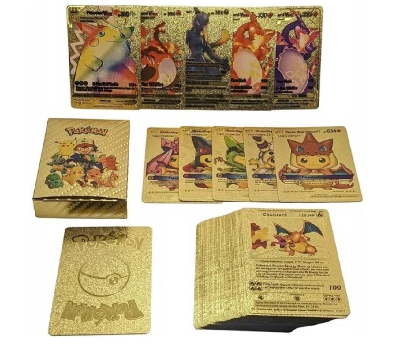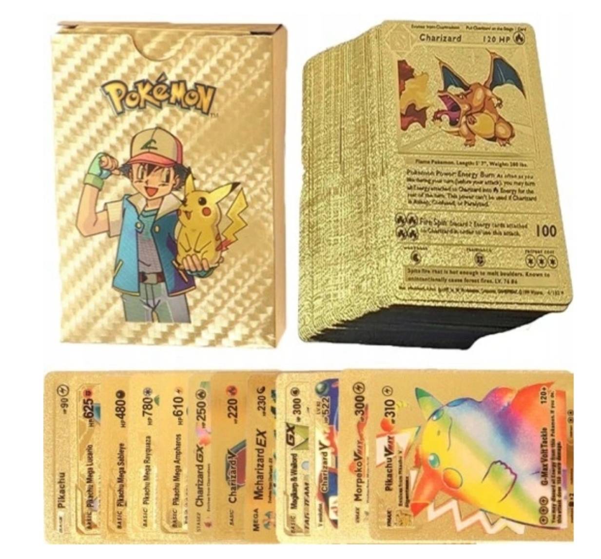 Istnieją złote karty Pokemon. Oczywiście nie są ze złota, tylko pokryte są złotą farbą. Najczęściej karty te posiadają linie papilarne, lub hologram typu „grain” – wygląda jakby karta posypana była drobnym ziarnistym piaskiem.