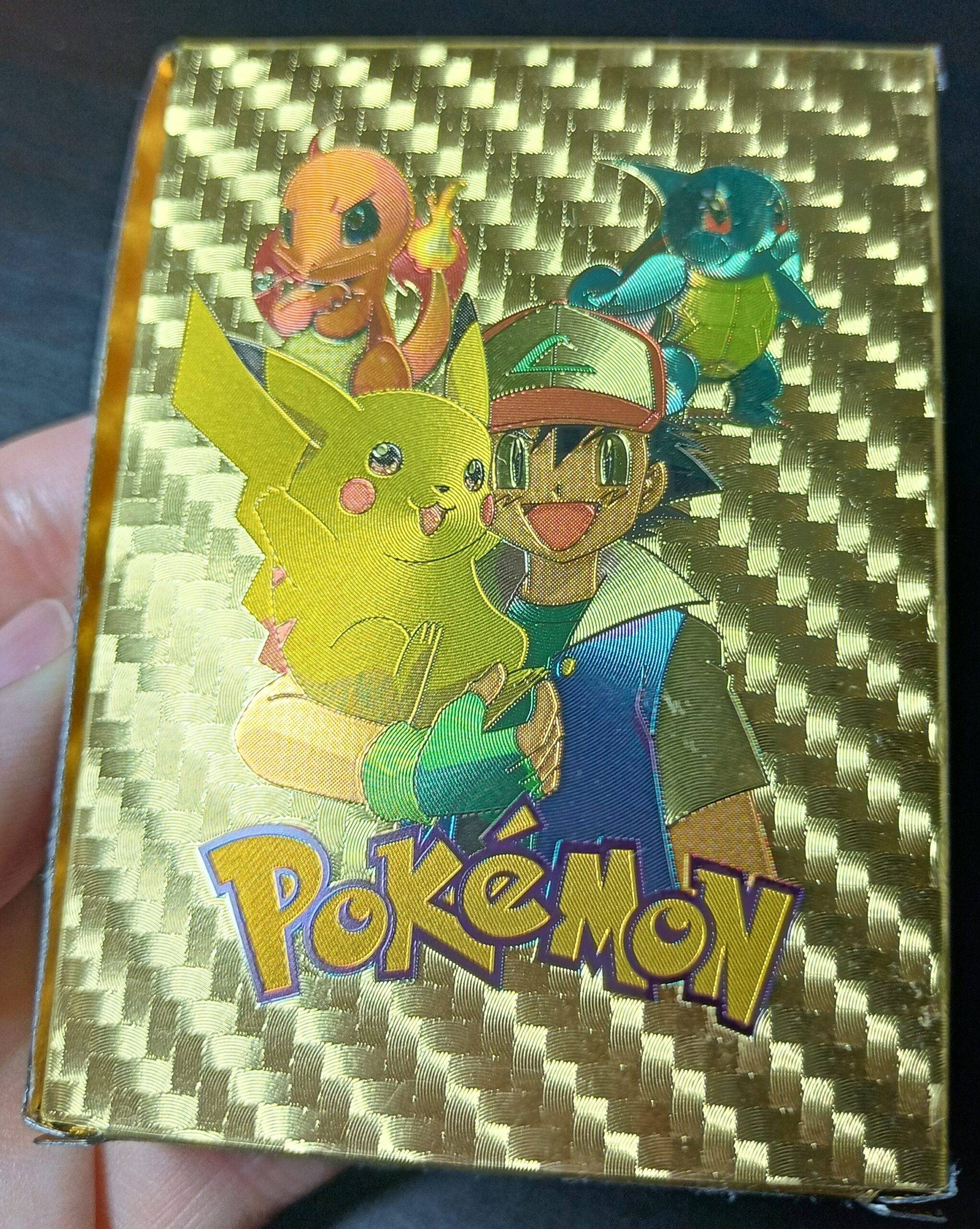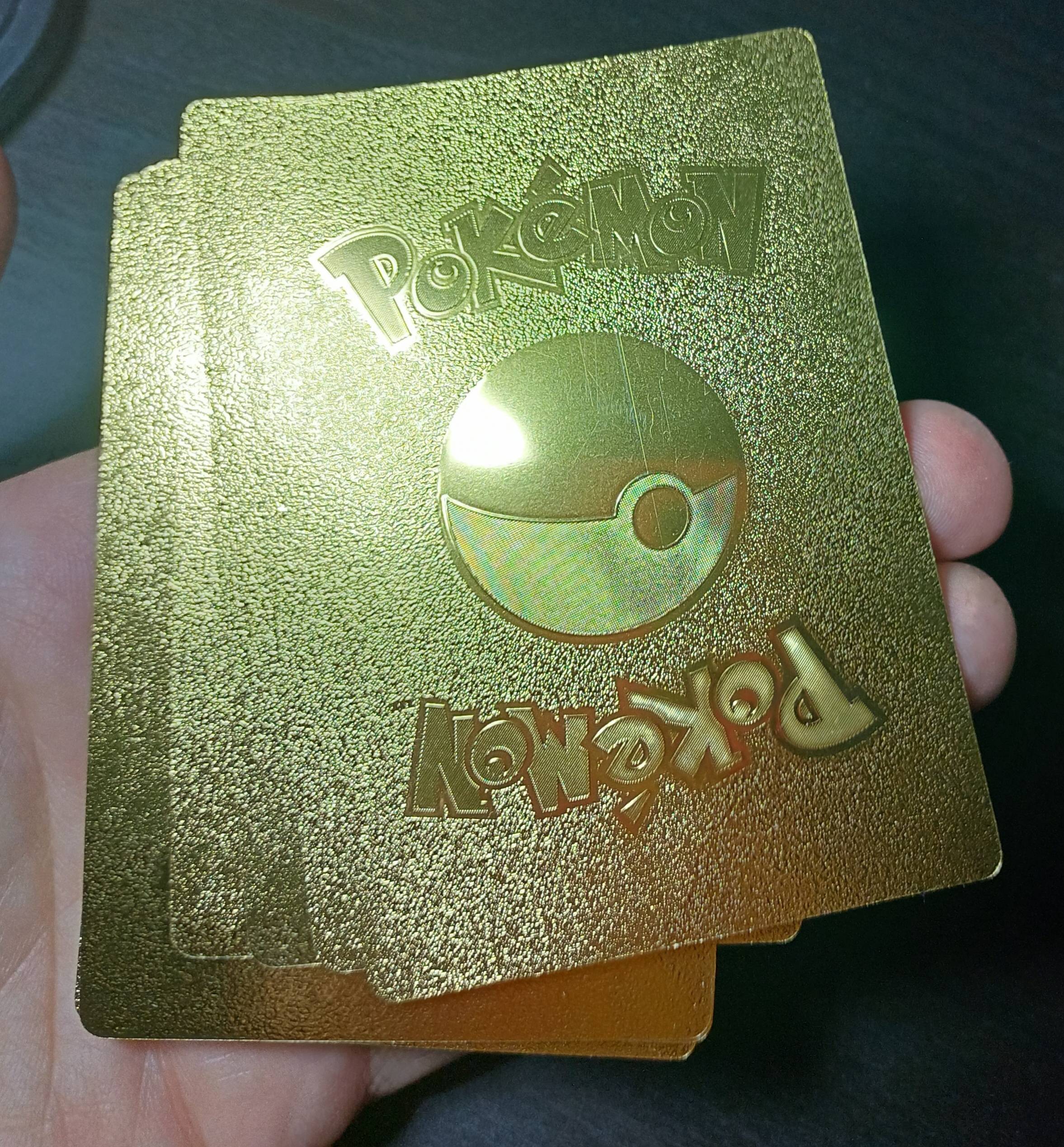 Ostatnio bardzo modne są podróbki złotych kart Pokemon (w tym również srebrnych oraz czarnych). Nie ukrywam – wyglądają bardzo ciekawie, ale w całości są podrobione. I wyglądają tak: