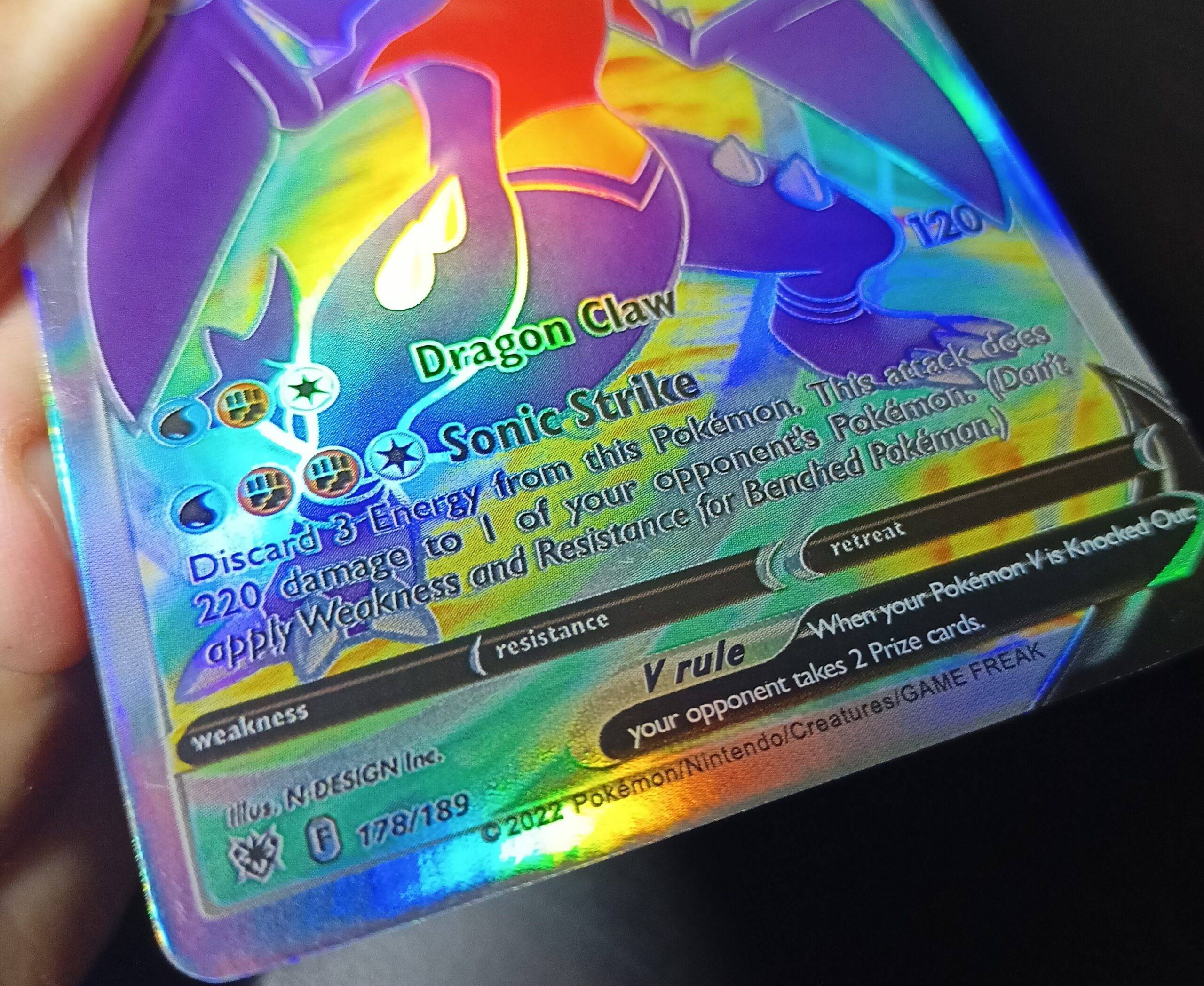 - W najnowszych kartach serii Scarlet/Violet hologram jest prosty lustrzany i bardzo łatwy do podrobienia. Karty mają szarą ramkę (a nie żółtą) i hologram ramki też powinien się świecić. Najrzadsze karty mają linie papilarne i hologram z drobnymi świecącymi pikselami